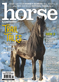 The August 2020 Print Issue of Horse Illustrated includes articles on COVID-19 recovery, colic surgery, trail class dos and don'ts, innovative trail sport programs, riding without cell signal, youth organizations, riding in America's national parks, and much more (see the full contents above).