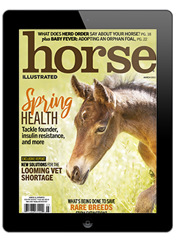 The March 2022 Digital Issue of Horse Illustrated includes advice for caring for the insulin resistant horse, a roundup of grazing muzzles, recommended springtime vaccines, what is being done about the impending equine veterinarian shortage, and more (see the full contents above).