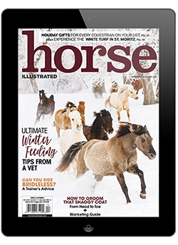 The November/December 2020 Digital Issue of Horse Illustrated includes winter feeding tips from a vet, grooming and blanketing strategies, holiday gifts, using a double bridle, riding bridleless, UTVs/ATVs, horses and divorces, how to catch a hard-to-catch horse, the White Turf of St. Moritz, and Irish Draught Horses (see the full contents above).