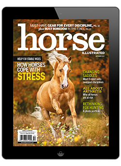 The October 2021 Digital Issue of Horse Illustrated includes help for stable vices, how horses cope with stress, changing disciplines, arthritis, must-have gear for every discipline, how to bust boredom in the stall, rethinking fox hunting, learn how to drag a log for ranch horse versatility, and more (see the full contents above).
