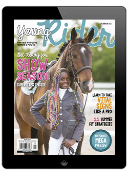 The Summer 2021 Digital Issue of Young Rider includes getting ready for the show season, how to take vital signs, 11 summer fly strategies, a BreyerFest mega preview, showing with IE, the American Quarter Horse, and more (see the full contents above).