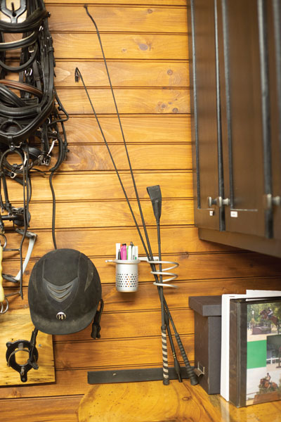 “I design spaces that look like you could live in them, and the way I do that is that I look at function first,” Hunter says. “Then I look at aesthetics second, because of course you want your tack room to look beautiful as well as be functional.”