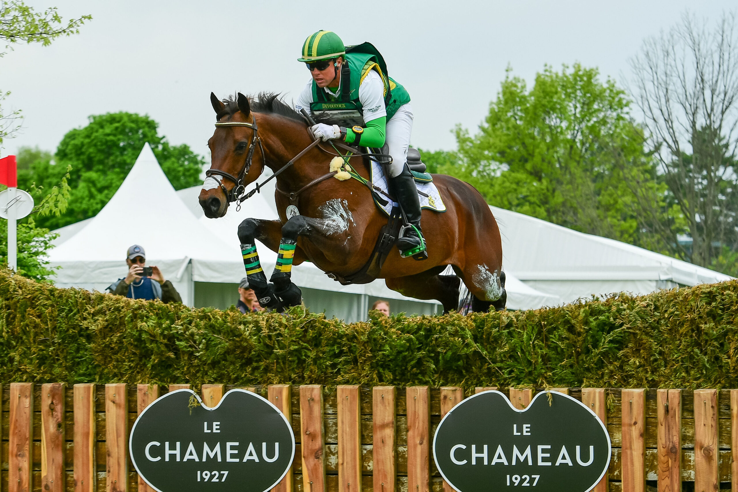 Michael Jung (GER) and Chipmunk FRH take the lead in eventing at the 2024 Paris Olympics after cross-country Michael Jung (GER) and Chipmunk FRH Laura Collett and London 52 on the 2024 Paris Olympics cross-country course with the Palace of Versailles setting the scene Laura Collett (GBR) and London 52 jump a Paris 2024 Olympics cross-country jump Boyd Martin and Fedarman B are the USA's highest ranked eventing pair after cross-country at the Paris Olympics Boyd Martin and Fedarman B clear the most recognizable fence of the 2024 Paris Olympics cross-country course Elisabeth Halliday (USA) and Nutcracker Caroline Pamucku (USA) and HSH Blake