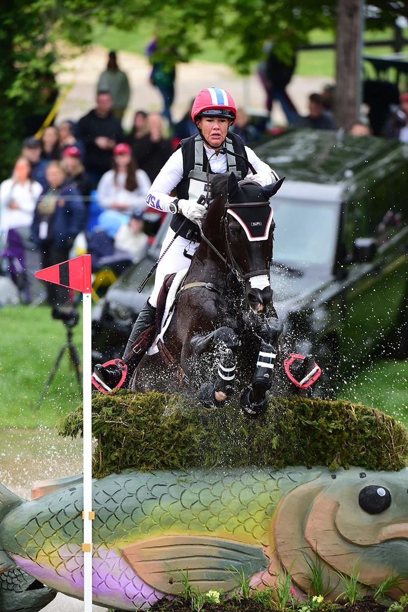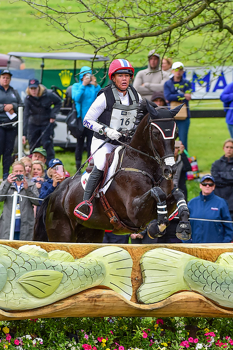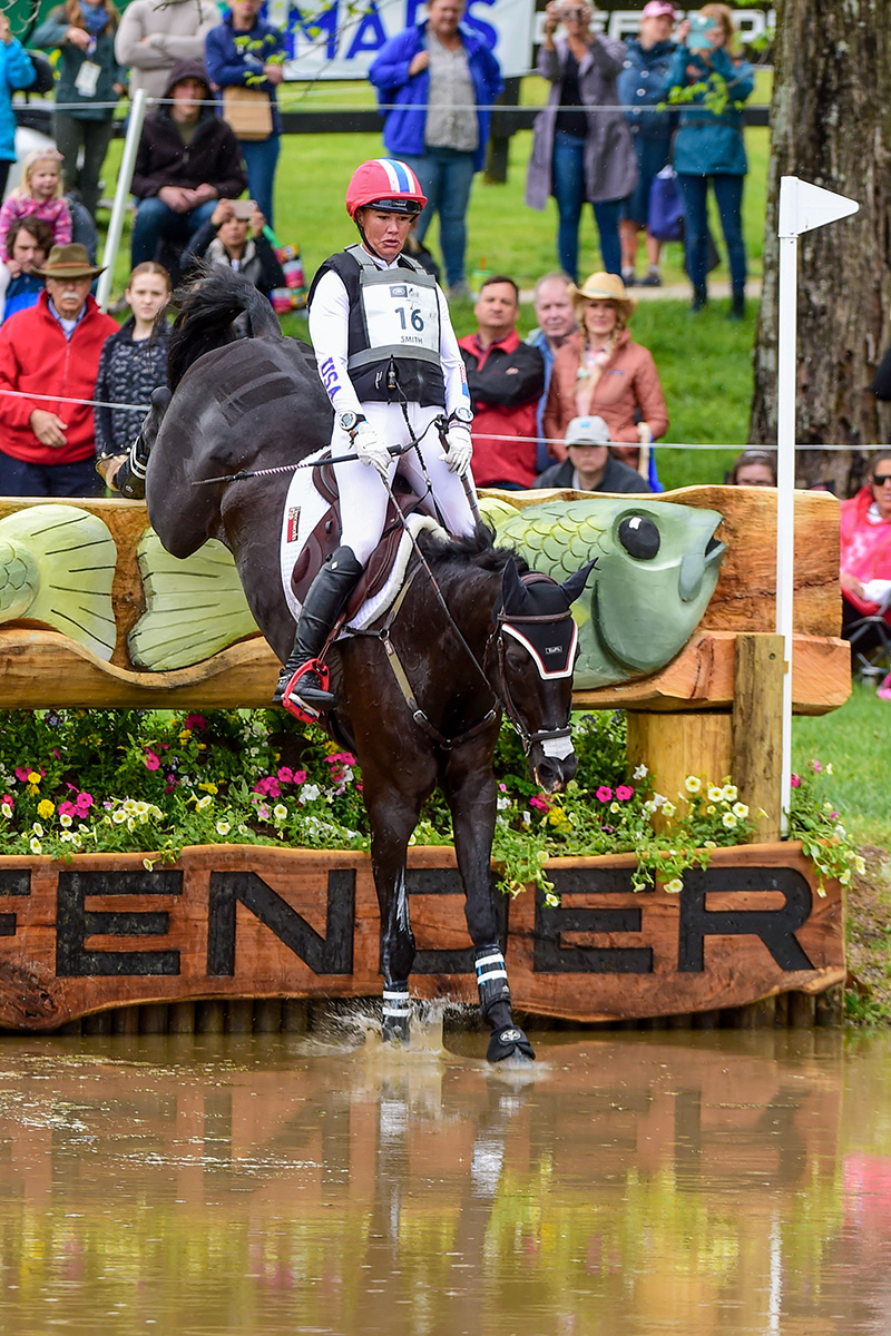 West Coast rider Tamra Smith and her long-time partner Mai Baum ran double-clear on cross-country, moving from 3rd place up to 1st, poised to try to become the first American winner of the event since Phillip Dutton in 2008—assuming she has a near-perfect stadium jumping round tomorrow.