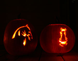 Assistant Editor Allison and I decided to road test the new HorseChannel pumpkin carving stencils. They came out pretty well, if I do say so myself. If you want to give them a try, download the stencils and get some carving tips here. Then let us know how your pumpkin turned out!