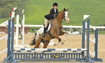 After learning enough in Aiken to fill an entire season normally, we were back for two weeks before the first show of the year in Kentucky. Another combined test, I was entered in the smallest division. He was a little more excited in his dressage test this time around, probably because there were dozens of horses warming up for as far as the eye could see. But he still did a nice test for a score of 43, which is great considering he hasn’t learned to go on the bit yet! In jumping, the class that I thought would be cross-rails was in fact 2′ fences, all brightly painted and decorated with flower boxes, including three oxers! I was very nervous warming up, especially with the exciting atmosphere from all the horses zooming around. When it was time to go in the ring, Jester totally relaxed and jumped everything like it was easy-peasy.