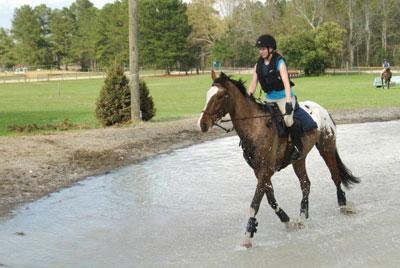 Aiken was amazing. We stayed at a facility with a racetrack that we got to ride on the first day (just walking and trotting for me). Every day, we trailered to different venues to ride. Two of the days we went to Hitchcock Woods, a beautiful forest with trails and small steeplechase jumps perfect for a fun day on horseback. Three of the days we went to different cross-country schooling venues, where Jester learned how to go into water jumps and hop over tiny ditches and logs. He took it all in and seemed to love it!