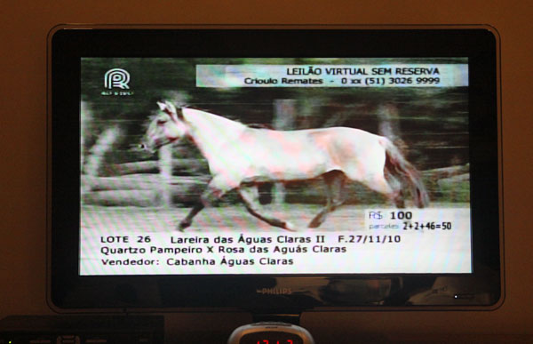 Yes, this is like QVC for horse shoppers. It was in Portuguese, of course, but from what I could tell it was a call-in auction program where viewers bid on horses being shown on screen. Do we have anything like this in the U.S.? It was new to me. I’m kind of glad I don’t have something like this. I might get myself in trouble with insomnia-induced late-night impulse buys.