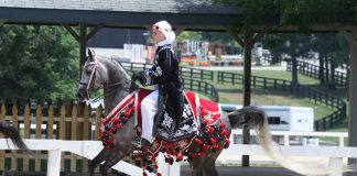 Last year, the Kentucky Dressage Association introduced a 5K run to raise money for the Markey Cancer Center. My dog and I ran it last year and I was happy to find out this year that it would be an annual event. This year’s race was held at the Kentucky Horse Park just before the Saturday evening Grand Prix Musical Freestyle. While my post-race routine is usually to have a nap or go find the nearest pizza, this time I stuck around and watched some dressage. I think my dog would have rather had a pizza, but I enjoyed it. Here are some photos from the competition.