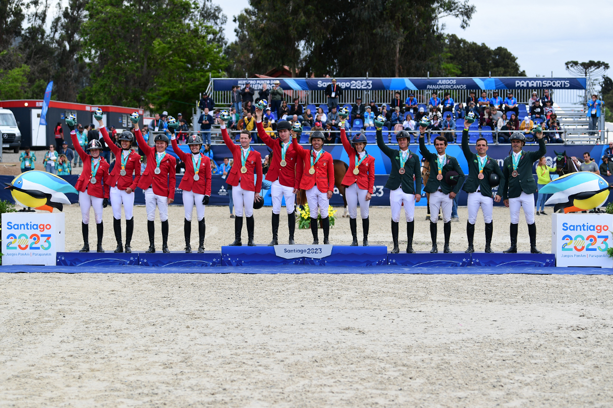 - The 2023 Pan American Games Show Jumping Team medalists: gold for the USA (center); silver for Canada (left), and bronze for Brazil (right). Mexico finished fourth and also secured a spot for the 2024 Paris Olympics. Photo by Allen MacMillan/MacMillan Photography
