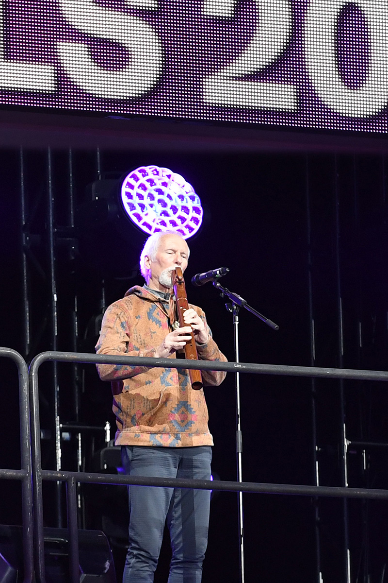- A musician from the Bluebird Cultural Initiative, a local Native American organization, performs during the opening ceremony for the Omaha Longines World Cup Jumper Finals on the final evening.Photo by Allen MacMillan/MacMillan Photography