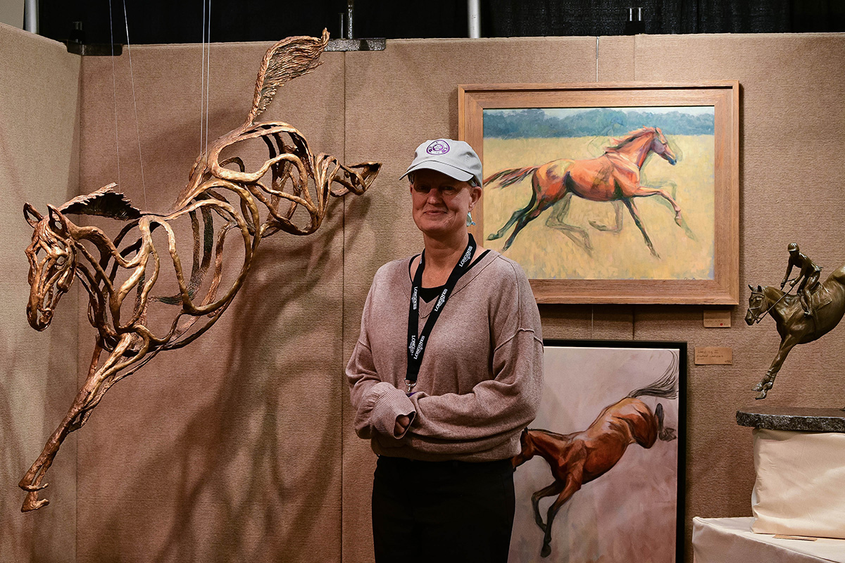 The Native American area, presented by the local Bluebird Cultural Initiative, was busy with history presentations, music and dance, and Native American-made products were offered for sale. Throngs of people trooped through the trade fair purchasing everything from equestrian-themed art and home décor, to tack and riding clothes, books and magazines, feed and horse care items, and home improvement and beauty products.