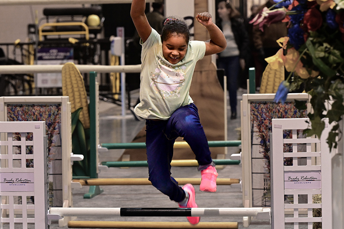 - Kids jumped for joy around the mini-jump course in the children’s activity area at the 2023 Omaha FEI World Cup Finals. Photo by Allen MacMillan/MacMillan Photography