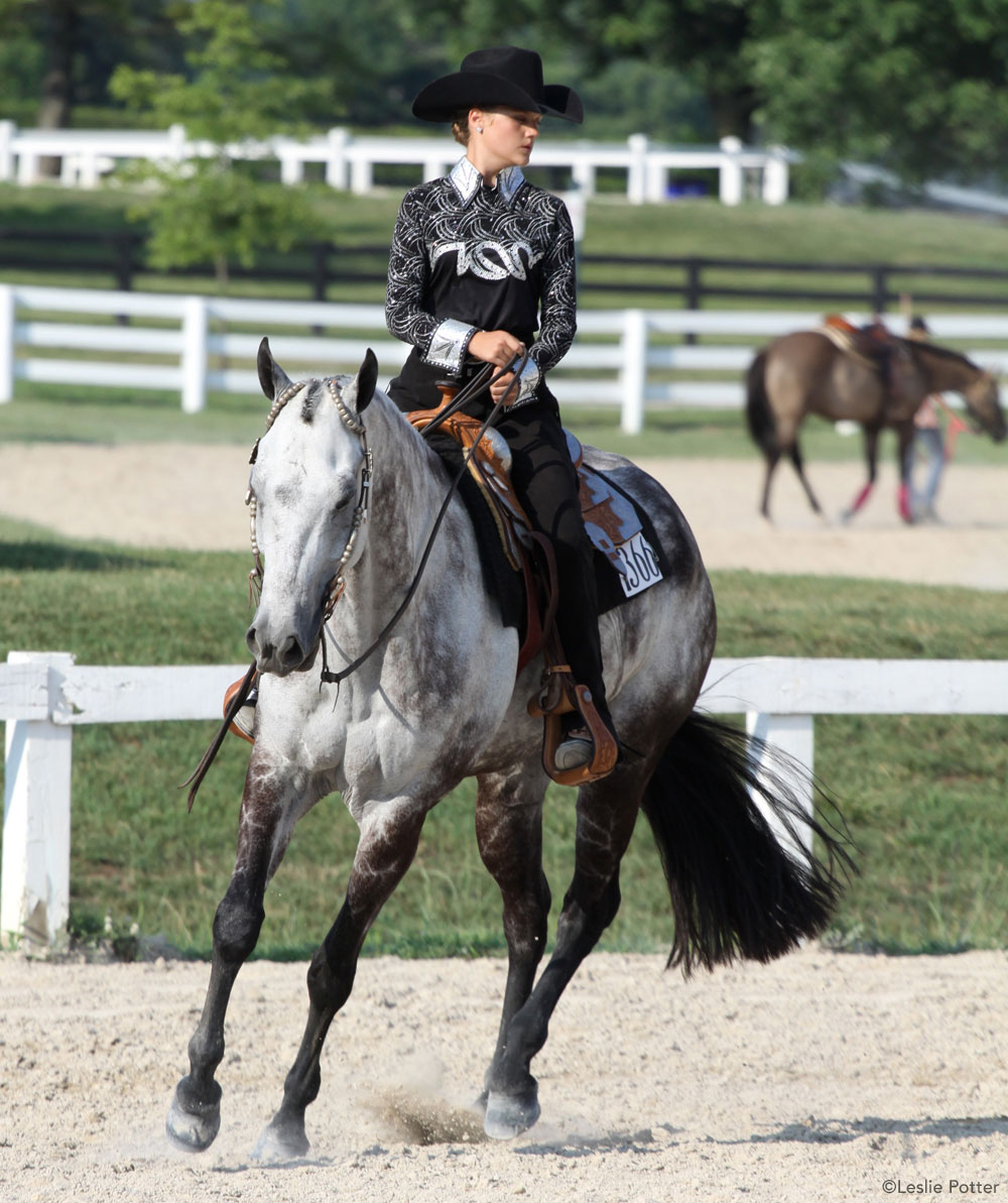 Q. I am training my 4-year-old horse for western pleasure. She has the headset and the nice slow speed at the walk and the jog; however, no matter what I do, her head is high and she is really fast at the lope. Is there any advice that you can give me to slow her down a little?