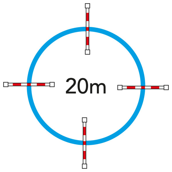You will need four ground poles, ideally wood ones that won’t roll if they get bumped. Mark out a 20-meter circle in your riding arena.